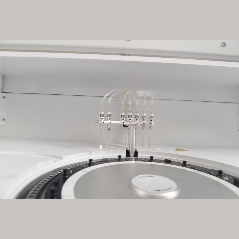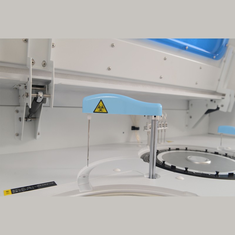 软件功能:中、英文显示界面,具有丰富的查询功能,全程反应曲线监测和数据显示功能;体检模式;中英文报告单;脏杯检测;自动稀释,自动重测;一键增益;酶线性拓展,测试组合、试剂效期管理、试剂、样品、反应盘全过程监测、前带检测、实时空白扣除、脏杯记忆回避、防交叉污染程序、血清指数、报告审核、急诊优先、指定测试顺序、数据模糊查询、报表统计与打印、参考范围分级、报警信息分级、用户操作权限分级管理、支持LIS/HIS(网口和串口)功能等;