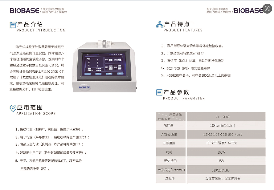 博科/BIOBASE CLJ-2083激光尘埃粒子计数器